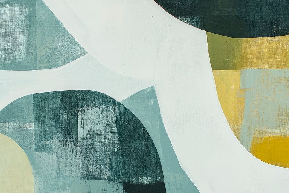 Warm geel, koel groen en zachte grijstinten smelten samen tot harmonieuze vormen die doen denken aan een kalme oceaan. Deze organische patronen geven elke kamer een ontspannen sfeer. Dit kunstwerk is bijzonder geschikt voor de woonkamer, waar het stijl en gezelligheid combineert en uitnodigt om te blijven hangen.