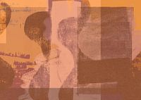 Moderne abstracte mixed media kunst. Monotypes van geometrische en organische vormen, zachte texturen, delicate lijnen creëren een modern kunstwerk geschikt voor een kantoor, wachtkamer, hal of moderne woonkamer. Design, Hotel chique, Minimalistisch, Industrieel, Scandinavische interieur woonstijl.