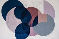 Dit kunstwerk brengt een dynamisch samenspel van vormen en kleuren. De overlappende cirkels en halve cirkels in verschillende tinten blauw, roze en grijs creëren een moderne en rustgevende uitstraling. Dankzij het minimalistische ontwerp kan dit stuk een ruimte direct transformeren, zonder overweldigend te zijn. Perfect voor een slaapkamer of kantoor, waar het een serene sfeer oproept, of een woonkamer waar het kan fungeren als een stijlvolle eyecatcher. De zachte, gedempte kleuren geven het een veelzijdige kwaliteit, waardoor het zich gemakkelijk aanpast aan verschillende interieurstijlen. Dit abstracte werk is ideaal voor wie op zoek is naar een kunstwerk dat zowel eigentijds als tijdloos aanvoelt.