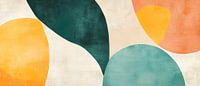 Een creatieve compositie van organische vormen ontvouwt zich in zachte, harmonieuze kleurtonen die doen denken aan een dromerig landschap. De combinatie van warme aardetinten en koele accenten geeft elke kamer een uitnodigende sfeer. Ideaal voor de woonkamer om gezelligheid en stijl te verenigen en je uit te nodigen om te blijven hangen.