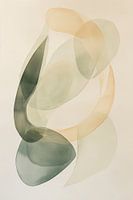 Dit verfijnde kunstwerk combineert abstracte vormen in subtiele tinten zoals olijfgroen, beige en zachtgeel. De vloeiende lijnen en overlappende lagen creëren een harmonieuze balans, ideaal om een rustige en moderne sfeer aan uw interieur toe te voegen. Perfect voor liefhebbers van minimalistisch design en abstracte kunst, deze compositie past naadloos in een woon- of eetkamer. Laat u inspireren door de kalmerende werking van deze unieke aquarelstijl.