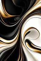 Dit unieke ontwerp combineert vloeiende lijnen met een elegant kleurenpalet van zwart, wit en goud. Het dynamische patroon creëert een gevoel van beweging en luxe, perfect om een moderne ruimte te verfraaien. Ideaal voor woonkamers, kantoren of andere ruimtes waar een statement nodig is. Dit abstracte kunstwerk straalt verfijning en eigentijdse stijl uit, wat het een veelzijdige keuze maakt voor elke interieurstijl.