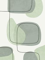 Abstracte minimalistische illustratie van ronde vormen. De achtergrond heeft een licht mintgroene kleur. De vormen bevatten groene tinten, met een subtiele structuur en een dunne zwarte lijn.