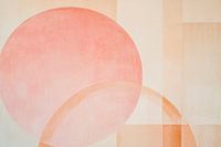 Zachte pastelkleuren omarmen een harmonieuze compositie van geometrische vormen, waarbij een grote, roze cirkel en doorschijnende bogen zinspelen op een spel met licht en ruimte. Heldere lijnen en zachte overgangen nodigen de kijker uit om zich onder te dompelen in een wereld van esthetiek en rust, waar minimalisme en subtiele kleurnuances elkaar ontmoeten.