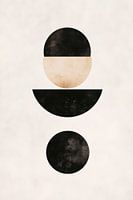 Een gereduceerde compositie ontvouwt zich in een harmonieus samenspel van vormen en kleuren: zachte rondingen ontmoeten heldere lijnen, terwijl contrasterende zwart- en crèmetinten fascinerende dieptes en dimensies creëren. Deze geometrische opstelling geeft de indruk dat het fluistert om een tijdloos verhaal van evenwicht en esthetiek te vertellen.