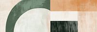 Eenvoudige elegantie ontvouwt zich door harmonieuze kleuren en heldere geometrische vormen. Zachte groene tinten worden gecombineerd met aardse nuances en stralend wit, terwijl de dynamische rondingen en rechte lijnen een fascinerend samenspel creëren. Deze compositie straalt rust en modernistische esthetiek uit en nodigt je uit om te blijven hangen en te dromen.