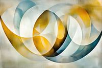 Dit werk presenteert een intrigerende compositie van abstracte vormen, waarbij kleuren en lijnen op een harmonieuze manier samenkomen. De dynamiek van de vormen nodigt uit tot reflectie en stimuleert de verbeelding.