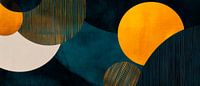 De harmonieuze cirkels in goud- en aardetinten smelten samen met diepblauwe tinten en creëren een rustgevende en toch levendige sfeer. Deze compositie van geometrische vormen brengt een moderne elegantie in elke woonkamer of kantoor en inspireert tot creativiteit en ontspanning. Een echte blikvanger die uitnodigt om te blijven hangen.
