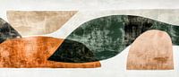 Zachte aardetinten ontmoeten harmonieuze lijnen en gebogen vormen die een uitnodigende rust uitstralen. De warme kleuren in zachte contrasten zorgen voor levensvreugde en natuurlijke elegantie. Perfect voor de woonkamer, waar het gezelligheid en stijl combineert en elke kamer een moderne, creatieve flair geeft.