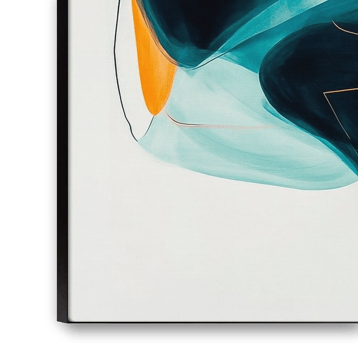 Zachte rondingen in aardse blauwe en oranje tinten trekken de aandacht en creëren een harmonieus evenwicht. De vloeiende vormen brengen een gevoel van rust en creativiteit over. Dit kunstwerk is ideaal voor een woonkamer, verbetert de sfeer en nodigt uit tot ontspanning en inspiratie. Het is uitnodigend en modern en zet stijlvolle accenten.