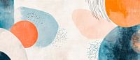 Zachte kleuren en vloeiende vormen vormen samen een harmonieuze compositie die de zintuigen aanspreekt. De warme aardetinten en koele blauwe nuances brengen een ontspannen sfeer in elke kamer. Het is ideaal voor de woonkamer en creëert een uitnodigende achtergrond die gezelligheid en creativiteit combineert.