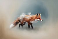 Dit unieke ontwerp toont een mystieke vos die zich lijkt te vormen vanuit een abstracte wereld. De levendige kleuren en dynamische penseelstreken zorgen voor een fascinerend contrast tussen de realistische vormen van de vos en de abstracte achtergrond. Het kunstwerk geeft een gevoel van beweging en energie, perfect voor moderne interieurs die op zoek zijn naar een opvallend en elegant stuk. Of je nu een kantoor of een slaapkamer wilt verfraaien, deze artistieke interpretatie van een vos brengt verfijning en karakter in elke ruimte. De subtiele kleurencombinaties en de speelse wisselwerking tussen abstractie en realisme zorgen voor een boeiende visuele ervaring.