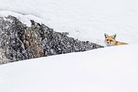 Ontdek de betoverende schoonheid van de Europese vos vastgelegd in een serene winteromgeving. Deze adembenemende foto toont de vos, met zijn vurige vacht prachtig afstekend tegen de witte achtergrond van de sneeuw, waardoor zijn natuurlijke gratie en scherpzinnigheid extra naar voren komen.
