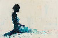 Details: abstract schilderij, vrouw schilderij, blauwe kleuren, emotionele kunst, moderne kunst, vrouw met kleuren, abstract vrouw, figuratieve kunst, beweging, kunst schilderij