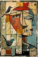 Dit abstracte meesterwerk is een feest voor de ogen. De levendige kleuren en geometrische vormen creëren een dynamisch portret van een vrouw, omringd door twee vogels. Het schilderij is een perfecte aanvulling op elke moderne ruimte en zal zeker gesprekken op gang brengen. Het is een uniek stuk dat een vleugje verfijning en intrige toevoegt aan elk interieur.