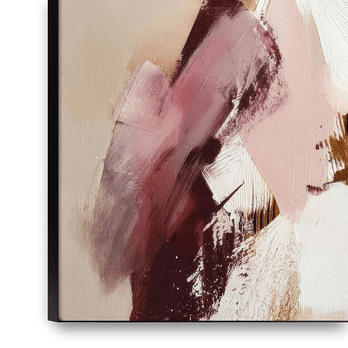 Een abstracte, elegante vrouwenfiguur in een zachte pastelwereld van blush, crème en warm bruin. Met losse, expressieve penseelstreken en gelaagde verfvlakken ontstaat een silhouet dat tegelijk fragiel en krachtig aanvoelt. De donkere top geeft contrast en structuur, terwijl de lichte, bijna transparante lagen eromheen zorgen voor lucht…