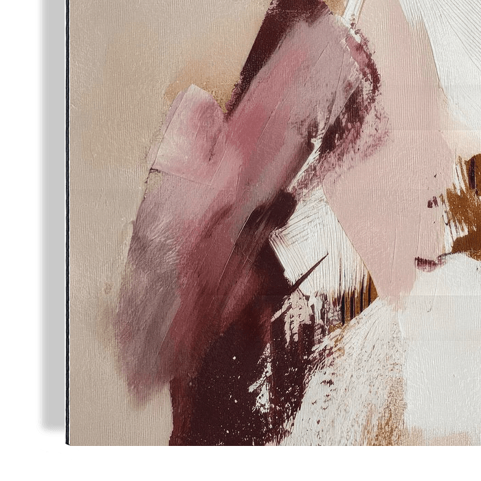 Een abstracte, elegante vrouwenfiguur in een zachte pastelwereld van blush, crème en warm bruin. Met losse, expressieve penseelstreken en gelaagde verfvlakken ontstaat een silhouet dat tegelijk fragiel en krachtig aanvoelt. De donkere top geeft contrast en structuur, terwijl de lichte, bijna transparante lagen eromheen zorgen voor lucht…