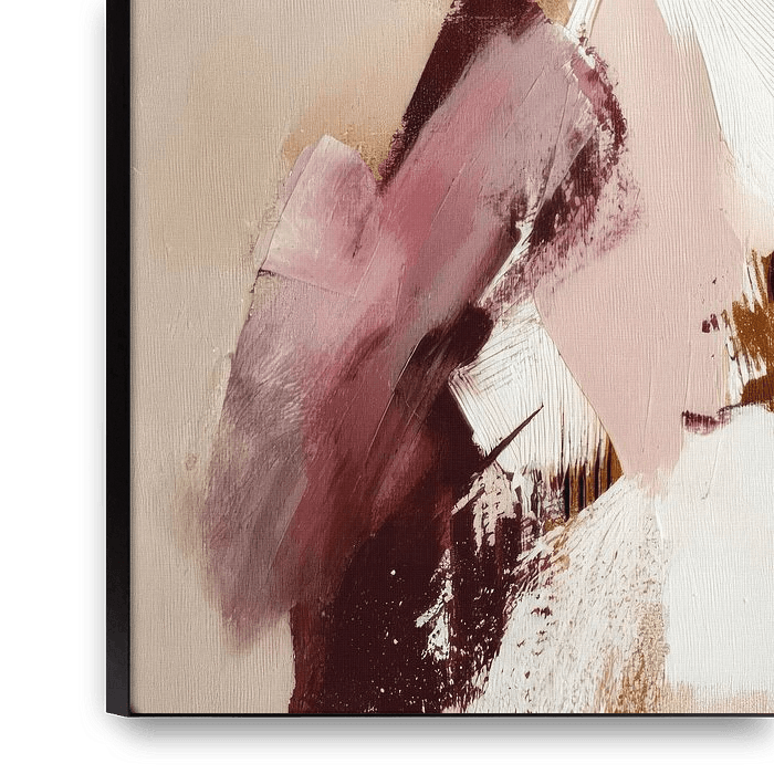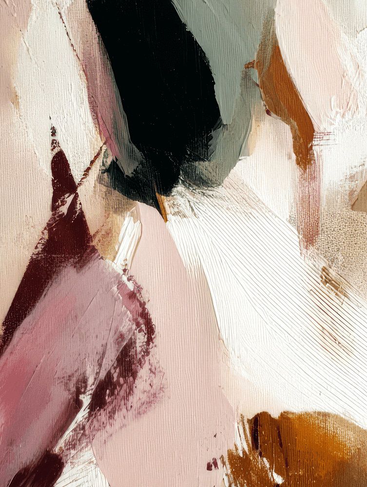 Een abstracte, elegante vrouwenfiguur in een zachte pastelwereld van blush, crème en warm bruin. Met losse, expressieve penseelstreken en gelaagde verfvlakken ontstaat een silhouet dat tegelijk fragiel en krachtig aanvoelt. De donkere top geeft contrast en structuur, terwijl de lichte, bijna transparante lagen eromheen zorgen voor lucht…