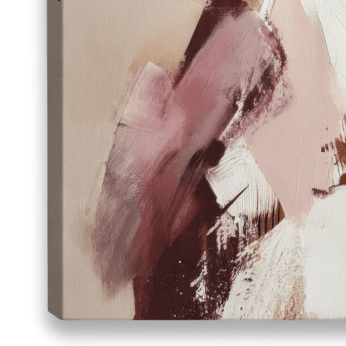 Een abstracte, elegante vrouwenfiguur in een zachte pastelwereld van blush, crème en warm bruin. Met losse, expressieve penseelstreken en gelaagde verfvlakken ontstaat een silhouet dat tegelijk fragiel en krachtig aanvoelt. De donkere top geeft contrast en structuur, terwijl de lichte, bijna transparante lagen eromheen zorgen voor lucht…