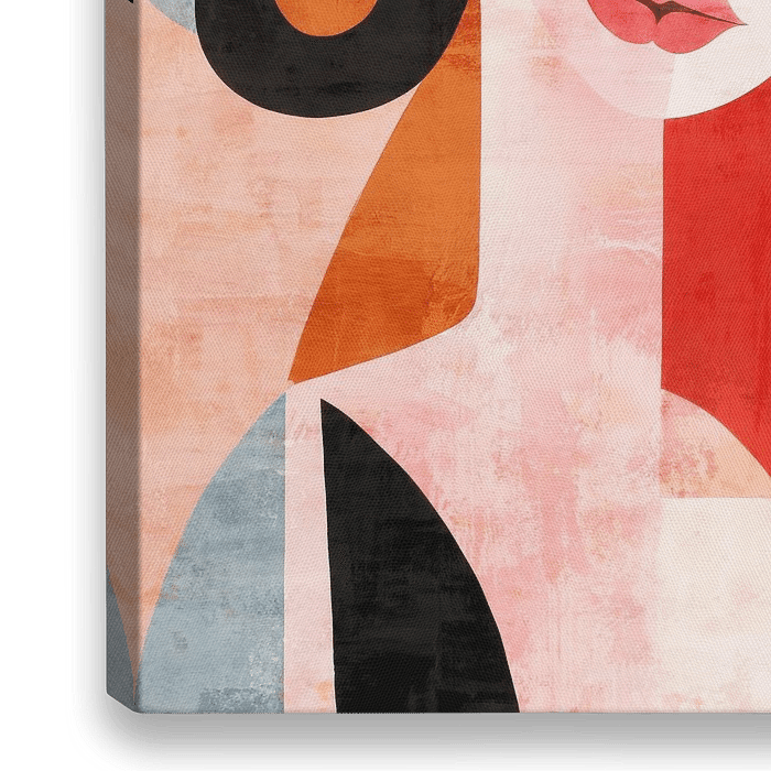 In dit kunstwerk ontstaat een boeiende weergave van een abstracte vrouw. Ze lijkt te dansen te midden van een levendige mix van felle kleuren, zoals oranje, roze, rood, zwart-wit en zachte beige tinten. Haar lippen vallen op door hun intense rood. De vrouw straalt een mysterieuze kracht uit, omringd door een enigmatische sfeer. Dit…