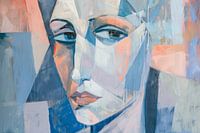 Dit prachtige portret van een vrouw in kubistische stijl combineert pasteltinten blauw, beige en roze tot een harmonieuze compositie. Het gezicht, geabstraheerd in geometrische vlakken, straalt een fascinerende rust en gratie uit. De moderne, strakke lijnen en het zachte kleurenpalet maken dit kunstwerk een perfecte blikvanger voor…