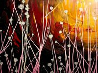 Zoek je een kunstwerk dat zowel mysterie als warmte uitstraalt? Dit unieke digitale werk combineert de delicate silhouetten van wilde grassen en droogbloemen met een achtergrond die bruist van intensiteit.