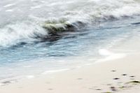 Abstracte zeegolf op het strand, langdurige belichting gecombineerd met meerdere belichtingen voor een schildereffect, kopieerruimte, geen echte focus.