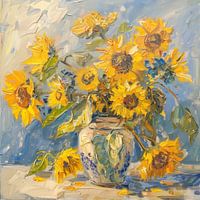 Koop dit bloemen kunstwerk Abstracte zonnebloem in vaas van TheXclusive Art op canvas, aluminium dibond, (ingelijste) fotoprint, behang en ArtFrame, op maat geprint in Fine-Art kwaliteit.