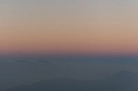 Abstracte zonsopkomst in Nepal. Enkele bergen zichtbaar door de mistige wolken. Simplistische landschapsfoto van de Himalaya.