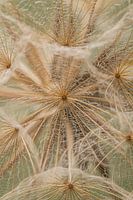 Natuurlijke pastelkleurige pluisjes dragen de kleine waterdruppeltjesMarjolijn van den Berg Abstract vierkantje: De druppeltjes rusten op een paardenbloemMarjolijn van den Berg