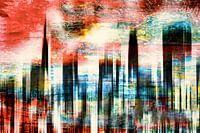 Fotocollage van de architectuur van wolkenkrabbers in het centrum van San Francisco in Californië VS abstract in kleurrijk