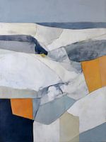 Breng een gevoel van moderne rust in uw ruimte met dit opvallende abstracte landschap. Dit originele kunstwerk combineert op meesterlijke wijze geometrische vormen en organische contouren en roept de serene schoonheid van kustgezichten op door een eigentijdse lens.