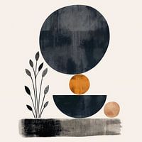 Mooi sereen abstract werk in grijs taupe tinten. Met roestkleurige cirkels. En een plant vorm. Rustig geheel dat een blikvanger is in je interieur. Ook heel mooi te combineren met een ander werk uit deze serie.