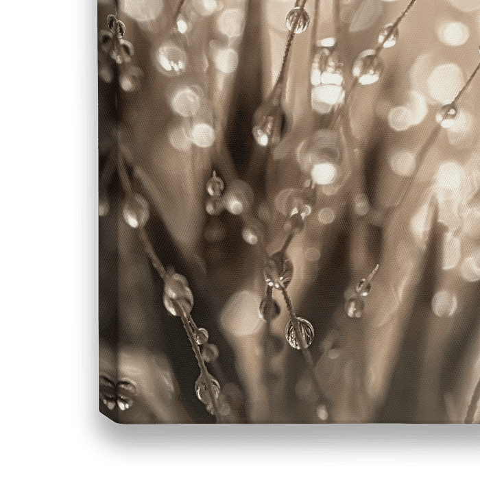 Koop dit abstracte kunstwerk Abstractie in taupe - beige en grijs tinten (Druppels aan een grasaren) van Marjolijn van den Berg op canvas, aluminium dibond, (ingelijste) fotoprint, behang en ArtFrame, op maat geprint in Fine-Art kwaliteit.