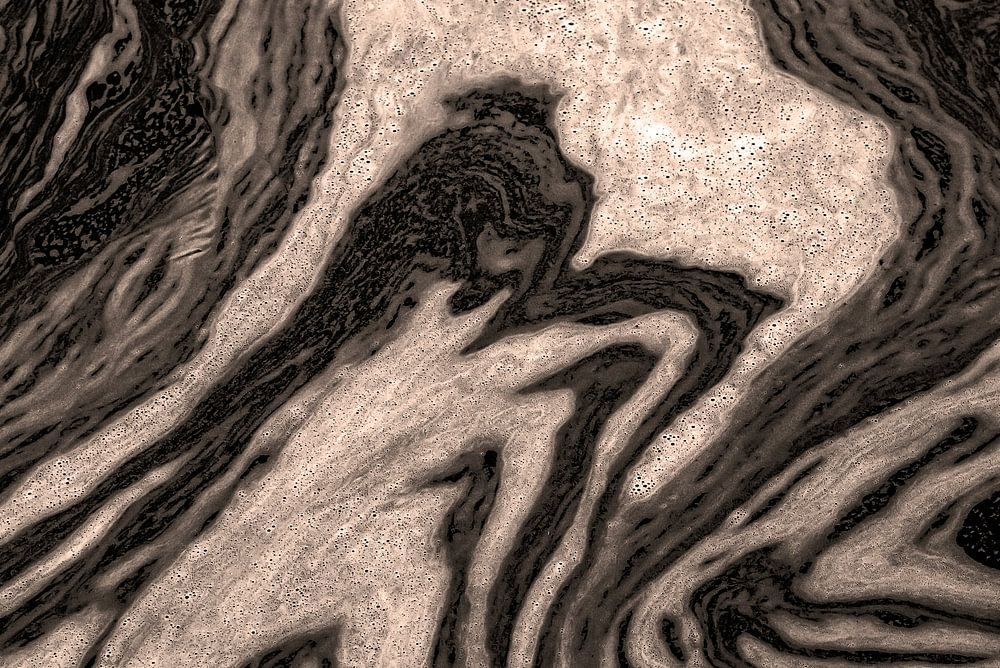 Schuimend water bij een sluis. Door de stromende beweging ontstaat een boeiend patroon.