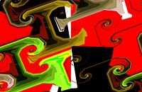 digital erstelltes abstraktes design mit spiralen , rot ,grün,schwarz,weiss,