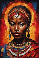 Het kunstwerk gaat verder dan esthetiek en is een viering van identiteit, waardigheid en innerlijke uitstraling. Elke streek voegt een dimensie toe aan het portret, verweeft individualiteit en cultureel erfgoed op een manier die universeel en diep persoonlijk aanvoelt. De gelaagde texturen suggereren een verhaal dat zich in de compositie ontvouwt, waarin schoonheid en kracht harmonieus samengaan. Of het nu in een huis, galerie of werkruimte hangt, dit werk biedt warmte en inspiratie en creëert een aanwezigheid die blijft hangen. Het is niet zomaar een portret - het is een schilderkunstig eerbetoon aan gratie, veerkracht en de blijvende kracht van de menselijke geest.