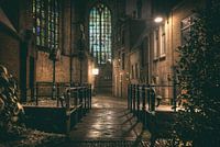 Het historische centrum van Gouda, bedekt onder een dun laagje sneeuw. Eeuwenoude gebouwen, kleine steegjes en het winterse weer en snel denk je dat je terug in de tijd bent gevlogen door de oude sfeer die in de stad hangt. Zo ook dit kleine steegje, achter de grote kerk van Gouda, de St. Janskerk. Deze kerk is de langste kerk van Nederland met een lengte van 123 meter.