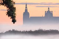 Een mistig zicht op de Sint Jan in Den Bosch vanuit het Bossche Broek, Noord-Brabant, Nederland