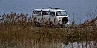 Achter riet, VW bus, water, oeverstaten bos, bezinning, auto's, voertuig, decoratief, reizen, vrije tijd, vakantie, het kamperen, bus, camping