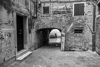 Een achteraf steegje in Venetië met een lage doorgang naar het water. Net zoals vele steegjes in Venetië loopt deze ook dood op een kleine binnenplaats met toegang naar het water.