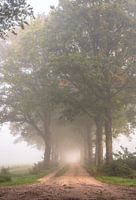Portret in Veldhoek, in de Achterhoek in Gelderland, met zicht op een bomenlaan in de mist, waarbij het lijkt alsof er licht is aan het einde van de tunnel
