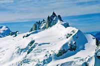 Luchtfoto van de Aiguille du Midi in Chamonix Mont-Blanc. De zuidoostelijke kant is gevuld met ruggen en gletsjers, op de grens met Italië, op 3842 meter.