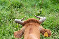 Weer eens wat anders dan van de voorkant van de koe. De koe droomt lekker in het gras.