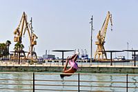 Koop de foto Acrobatische sprong in het havenbassin van Cádiz van Silva Wischeropp op canvas, aluminium dibond, (ingelijste) fotoprint, behang en ArtFrame, op maat geprint in Fine-Art kwaliteit.