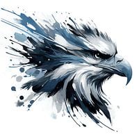 De adelaar, een symbool van macht in de lucht, is getekend met een penseelschildereffect met sterke streken die zijn sterke identiteit met scherpe ogen en klauwen impliceren.