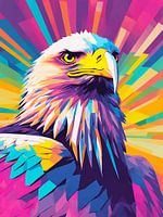 Eagle WPAP (Wedha's Pop Art Portrait) toont een opvallende, geometrische weergave van een adelaar, die zijn majesteit en kracht samenvat door middel van levendige kleuren en krachtige lijnen. Deze kenmerkende kunststijl benadrukt hoekige vormen en contrasterende tinten, waardoor een dynamische visuele ervaring ontstaat die vrijheid en kracht symboliseert, ideaal voor liefhebbers van moderne kunst.