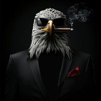 Adelaar - arend met sigaar en zonnebril schilderij die een prachtige luxe toevoeging zal zijn aan elke ruimte. Met zijn unieke en stijlvolle uitstraling is het een ware eyecatcher. De schitterende kleuren en het bijzondere ontwerp maken dit kunstwerk 100% uniek en origineel. Het is de perfecte fotoprint om je interieur helemaal af te maken.