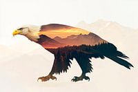 Een majestueuze adelaar, wiens silhouet wordt afgewisseld door betoverende landschappen, belichaamt de kracht en vrijheid van de natuur. De zachte kleurovergangen van zonsondergang en bergen geven het beeld een dromerige uitstraling. Ideaal voor de woonkamer, creëert een harmonieuze verbinding met de natuur en trekt ieders aandacht.