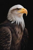 "Adelaar in het donker" is een dramatisch en indringend kunstwerk dat de majestueuze adelaar in een mysterieus en donker landschap plaatst. De adelaar, met zijn scherpe ogen en uitgespreide vleugels, wordt subtiel verlicht, waardoor zijn krachtige silhouet en imposante gestalte duidelijk afsteken tegen de donkere achtergrond. De schaduwen en lichtaccenten versterken het gevoel van kracht en vrijheid, terwijl de duistere omgeving een sfeer van mystiek en diepte toevoegt. Dit schilderij vangt zowel de dreigende als beschermende aura van de adelaar, en brengt een intense en meeslepende visuele ervaring tot leven.